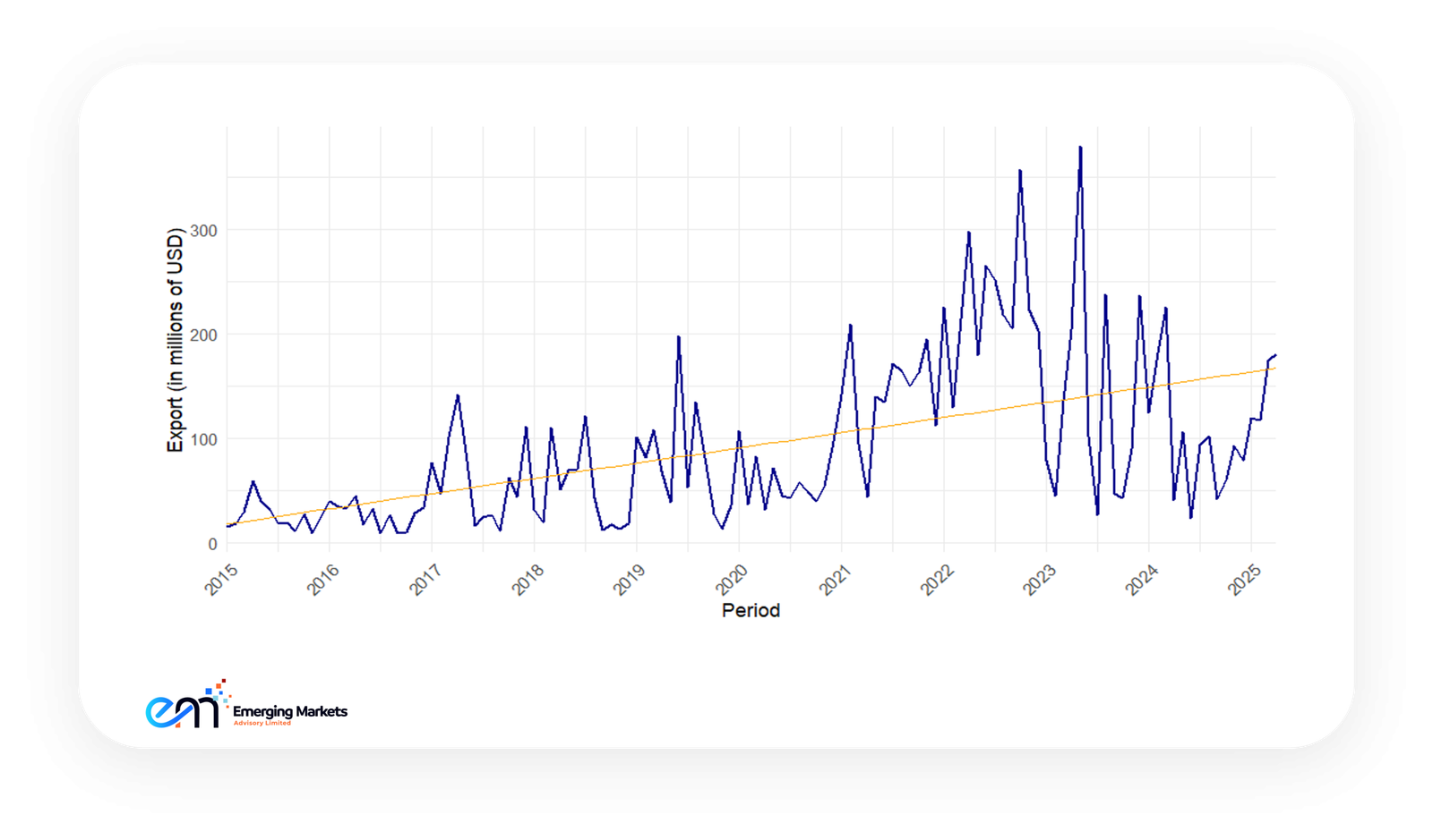 Figure 1: Ghana’s Exports to the US between 2015 and 2025